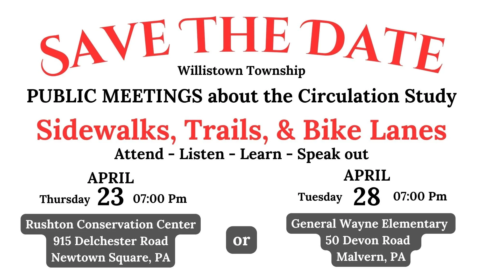 SAVE THE DATE - Willistown Public Meetings about the New Circulation Study